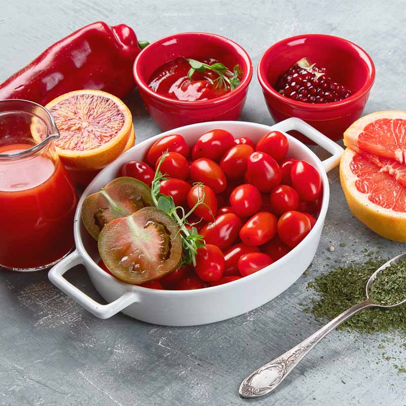 Potente antiossidante estratto dai vegetali di colore rosso-arancio e in alte concentrazioni dalle bucce del pomodoro. Agisce come antinfiammatorio e favorisce il sistema immunitario per la presenza di rilevanti livelli di Vitamina C.